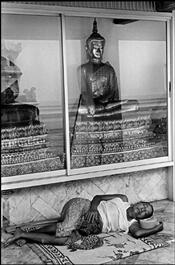 THAILAND. Bangkok. Wat PHO. A woman in deep sleep under the statue...