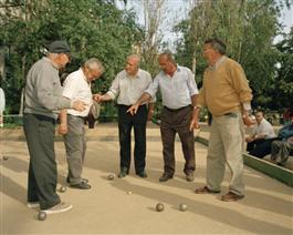 SPAIN. Barcelona. Boules in front of Gaudi Cathedral. 2000.