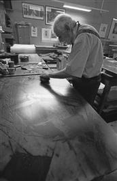 ITALY, Milan: working in yhe atelier of the printer Giorgio UPIGLIO....