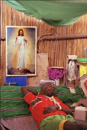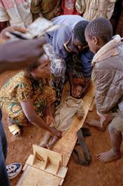 Africa. Burundi. Rusamaza. People sick with malaria lie around...