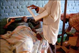Africa. Burundi. Bujumbura. While a man suffering from malaria...