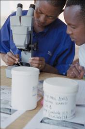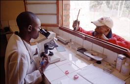 Africa. Burundi. Buhiga. MSF technicians checking malaria...