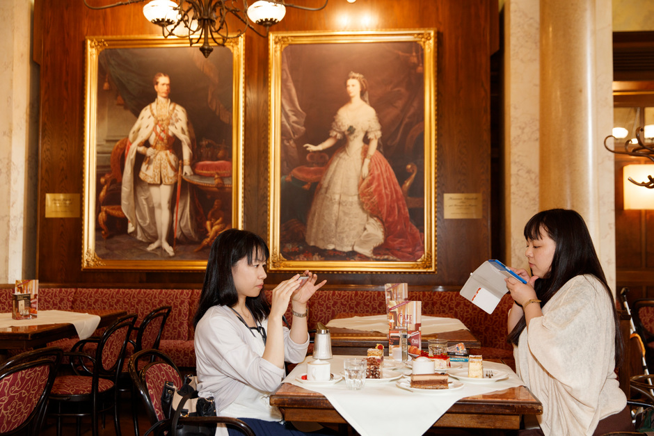 The book explores the know cliches of Vienna - the balls, the patisseries and the tourists. Martin photographed 5 of the 36 balls that make up the "ball season" in Vienna - the highest concentration of balls anywhere in the world. And also visited the most famous cafes, such as Cafe Central and Aida, with their glittering array of cakes as well as documenting the tourists relaxing on the Danube.