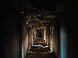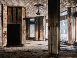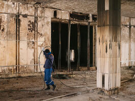 KAZAKHSTAN. Almaty. January 2022. Chairs seen in the ruins of...