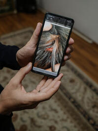 KAZAKHSTAN. Almaty. January 2022. A woman walking her dog near...