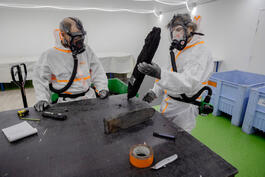 FRANCE. Saint-Witz. January 2022. Storage of debris recovered after the Notre-Dame Fire.