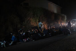 USA. ROMA, TX. Migrants who had lost the trail from the Rio...
