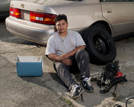 USA. Vallejo, California. 2016. Jose, who goes by Bonez, fixing...