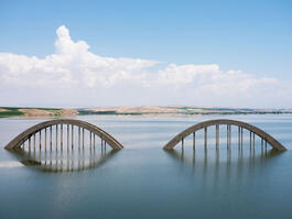 TURKEY. Bismil. 2020. Half of a bridge is still visible in the...