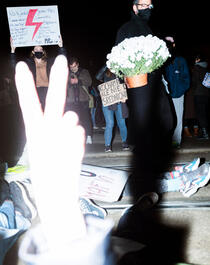 Protester blocking the street...