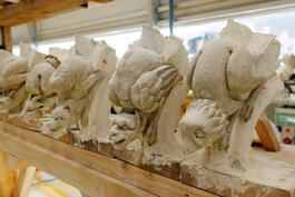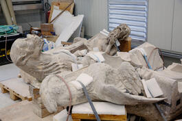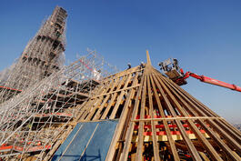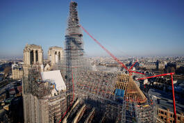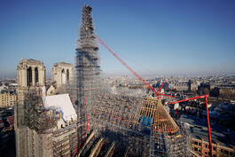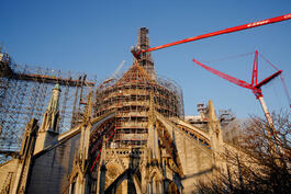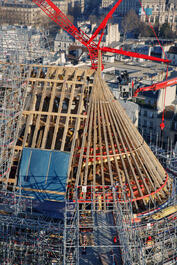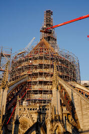 FRANCE. Paris. 11 January 2024. Notre Dame Restauration: Absyde of the heart of the cathedral, excavations and sculptures.
