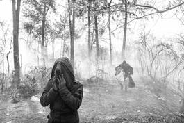 TURKEY. Edirne. 2020. A man is desperately trying to protect...