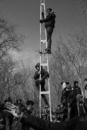 Turkey, Edirne. 2020. Migrants wait in front of Greek border...