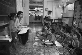 INDIA. Mumbai. Children from the slums are being taught by a...