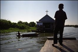 Cambodia. Chong Khnies. Tonle Sap Lake. Father Heri Bratasudarma,...