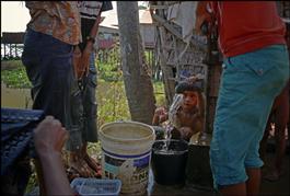 Cambodia. Siem Reap. Women gather at the fresh water pump...