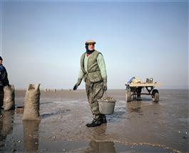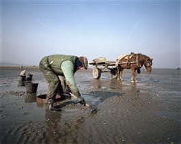 GB. Wales. N. Gower. Picking Cockles at the low tide at Penclawdd....