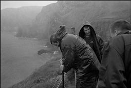 Northern Ireland. Antrim. Carrick-a-Rede. Wardens build fences...