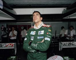 JAPAN. Suzuka race track. Justin Wilson in the Jaguar pit garage....