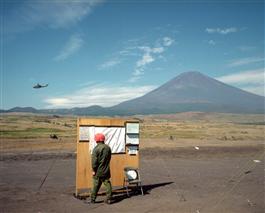 JAPAN. Fuji. Japanese Defense Forces helicopter gun-ships practice...