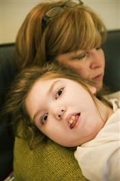 U.K. ENGLAND. Amy who suffers from acute Cerebal Palsy with fairylights...