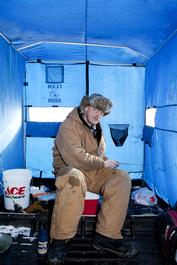 USA. Minnesota. Minneapolis. Winter Games. Ice Fishing. Mitch...