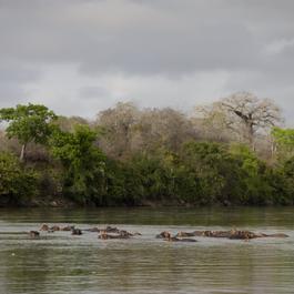 TANZANIA. The Selous Game Reserve. Hippos on the Rufiji river....