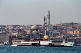 Europe. Turkey. Istanbul. A ferry on the BGolden Horn passes...