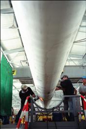 TURKEY. Istanbul. Workers at Saipem check the thickness of one...
