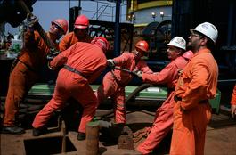 Turkey. Istanbul. Workers at Saipem's dockyard facility guide...
