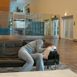 DENMARK. Copenhagen. Having a nap at Copenhagen International...