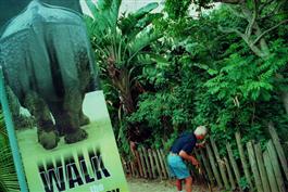 AUSTRALIA. Sydney. A man peers through a fence in Taronga Park...