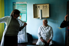 UKRAINE. Krasiv. 2006. A doctor (left) from the city of Lviv...