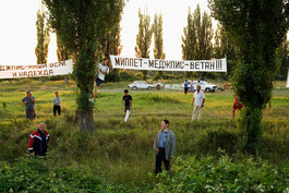 UKRAINE. Petrokhiv. 2006. See-sawing on the overgrown playground...