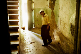 UKRAINE. Petrokhiv. 2006. A man visits from a nearby institution...