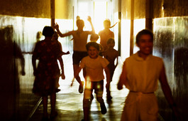 UKRAINE. Petrokhiv. 2006. Orphan girls run wild through the corridors...
