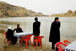 TURKEY. Hasankeyf, Batman Province. 2008. Tourists sit at waterside...
