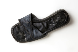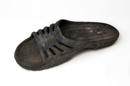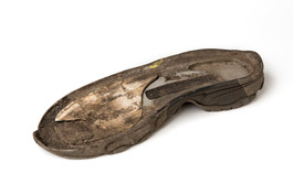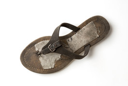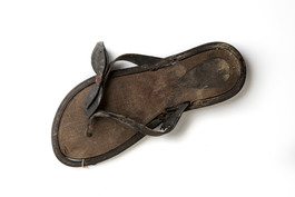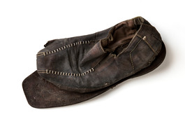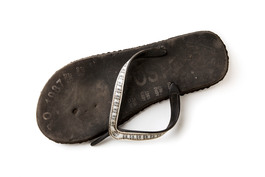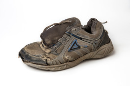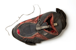 "Walk Alone." Shoes found along railroad tracks in Tapachula...