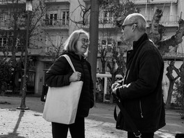 GREECE. Athens. 2019. Debbie and Joe Valencia walking in their...