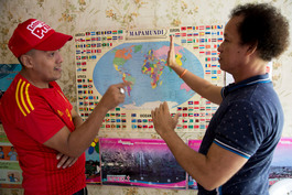 NICARAGUA. Managua. 2018. Jeffrey Mejia with Javier Lopez at...
