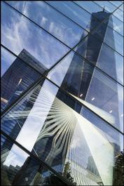 USA. New York. 2014. 7 and 1 World Trade Center reflected in...