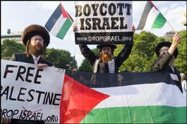 USA. New York. 2014. Union Square. Orthodox Jews at a pro-Palestinian...