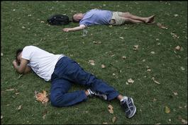 USA. New York. 2014. Relaxing in Bryant Park, behind the New...