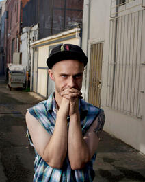 USA. Vallejo, CA. 2016. Andrew in the alley outside his shared...