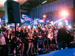FRANCE. Hénin Beaumont. April 23, 2017. Journalists during the...
