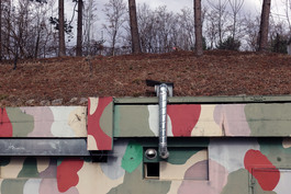 DMZ, South Korea. March 21, 2018. Display of security cameras...