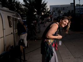 USA. Los Angeles. 2017. Madin of ProjectQ brings her Airstream...