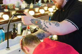 GB. England. Manchester. Barton Arcade. Barber Barber. 2018.