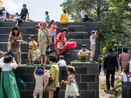 DPR Korea. Pyongyang. 2015. Crowds see their relatives and friends...