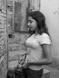 MEXICO. Tijuana. 2019. Migrant shelters. Alondra from Nicaragua....